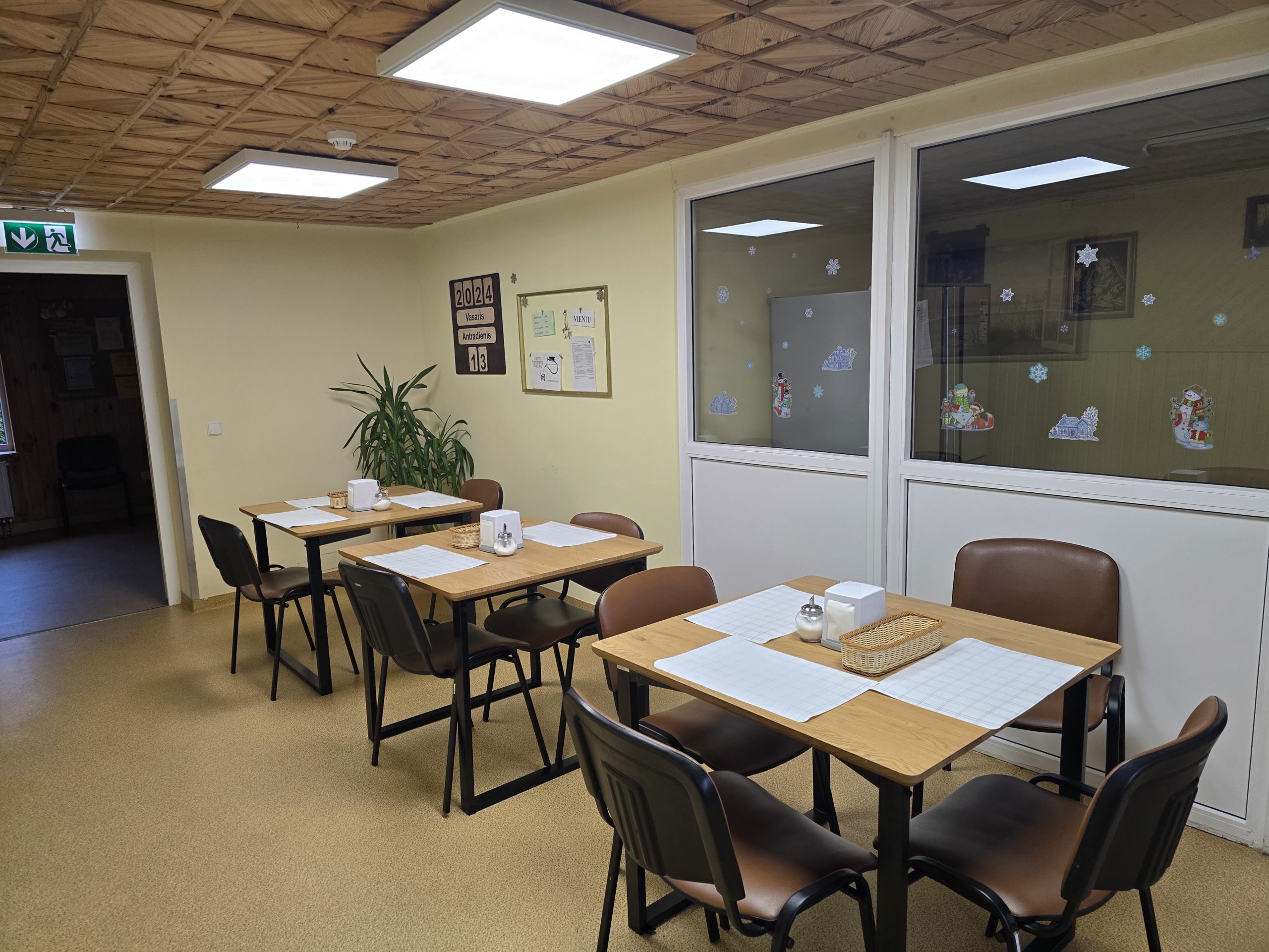 Gyventojai maitinasi naujai įrengtose, erdviose valgyklose. Maistą gamintis gali ir patys jaukiose virtuvėlėse.